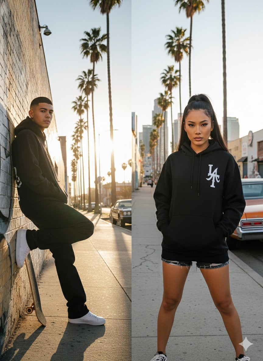 The Outline Black Tee is built for minimalists who want bold impact. Made from premium, soft-touch cotton, this tee features a sharp black-and-white contrast and a custom front logo that blends Los Angeles street culture with a clean modern edge.
