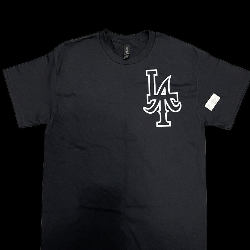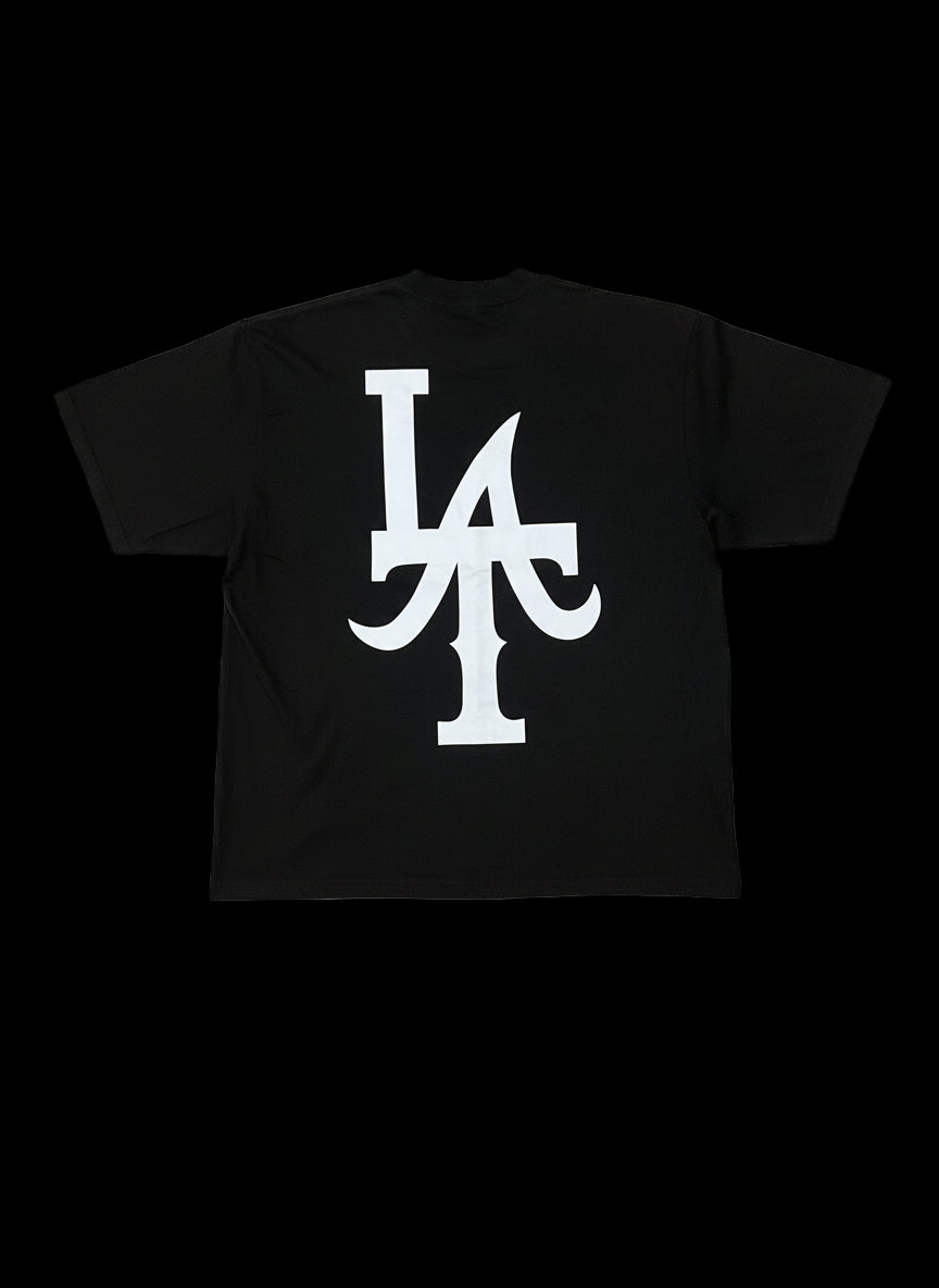 This tee ain’t for blending in. The Backprint Edition comes with that big, bold LA hit that walks in the room before you do. Front stays quiet, back does the talking — real West Coast rules.